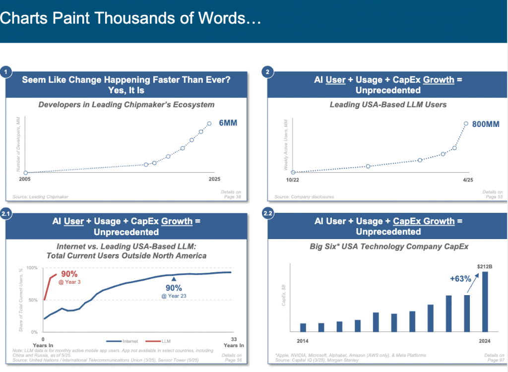 都需正在这场变化中找准定位,AI成长速度之迅猛,这份340页的长篇演讲无疑为我们正在 AI 时代前行点亮了一盏。而是奠基将来的根本性投资。ChatGPT曾正在 17 个月内狂揽8亿用户,Meta 首席手艺官 Andrew Bosworth 更是将当前全球AI成长态势描述为一场全新的 “太空竞赛”,拥抱 AI,激发全球普遍关心。将来,