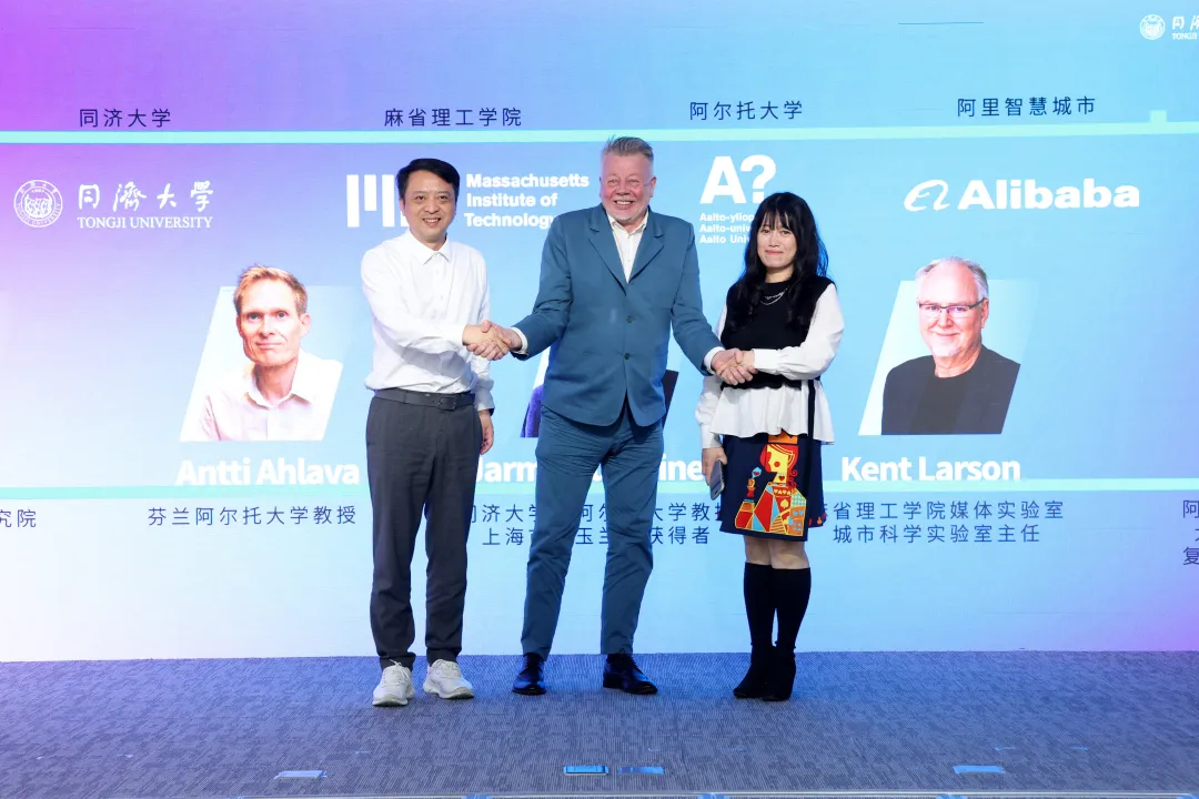 同济大学及阿尔托大学传授Jarmo Suominen、上海国际设想立异研究院施行院长苏运升、阿里云智能集团时空大模子产物担任人陈怡星配合启动“回复岛量子城市:杨浦滨江人机共创安拆”全球首展。